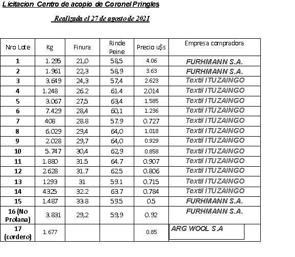 Se realizó la segunda licitación de lanas del 2021, fue en forma virtual, tal como está establecido y respetando los protocolos de la pandemia que atravesamos.