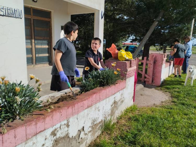 La Escuela Primaria Rural N° 19, ubicada en ruta 51 y 72 en el paraje denominado FraPal el día miércoles 8 de octubre y cerrando las propuestas de trabajo con plantas, decidió acondicionar los canteros del frente de la misma con especies que resisten al viento y los climas adversos ya que es un espacio muy expuesto a estos factores.