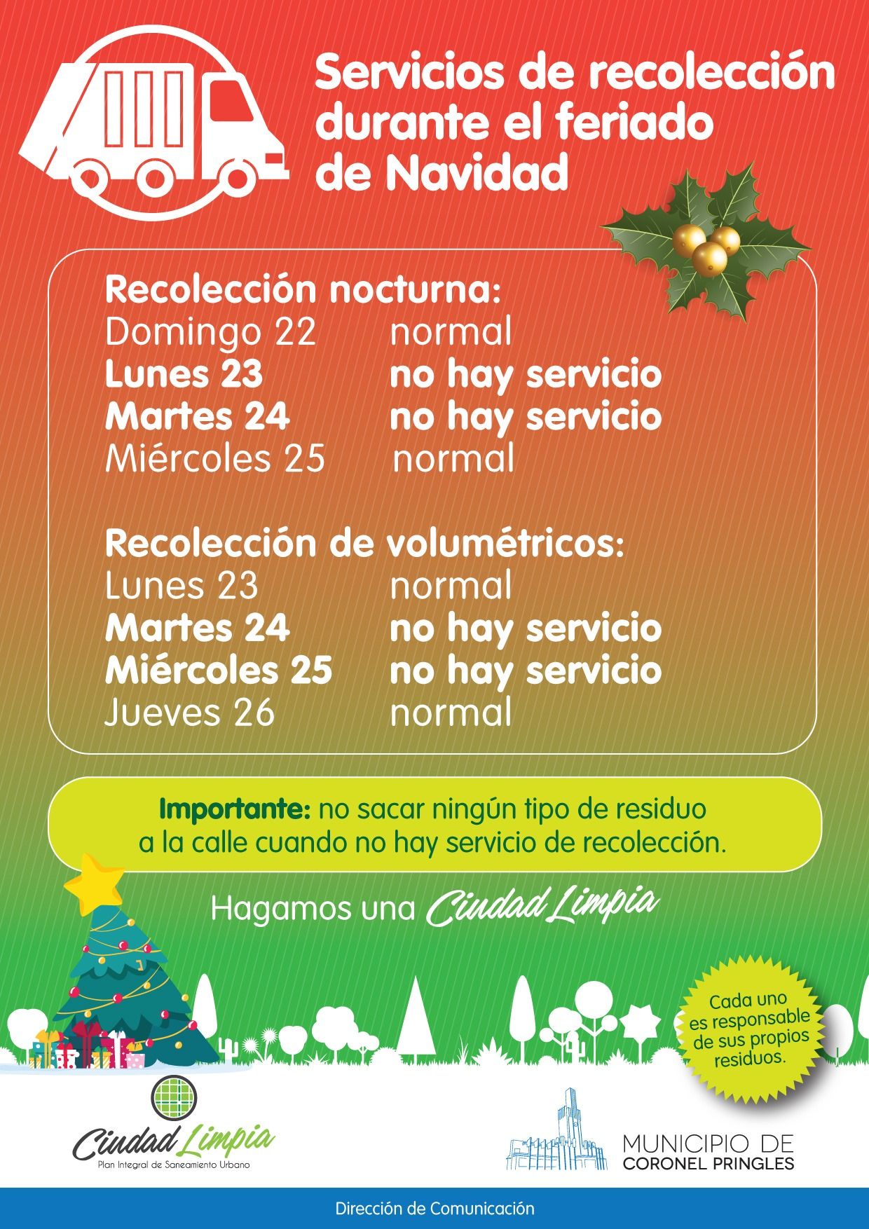 Así va a ser la recolección de residuos durante las Fiestas de Fin de Año.