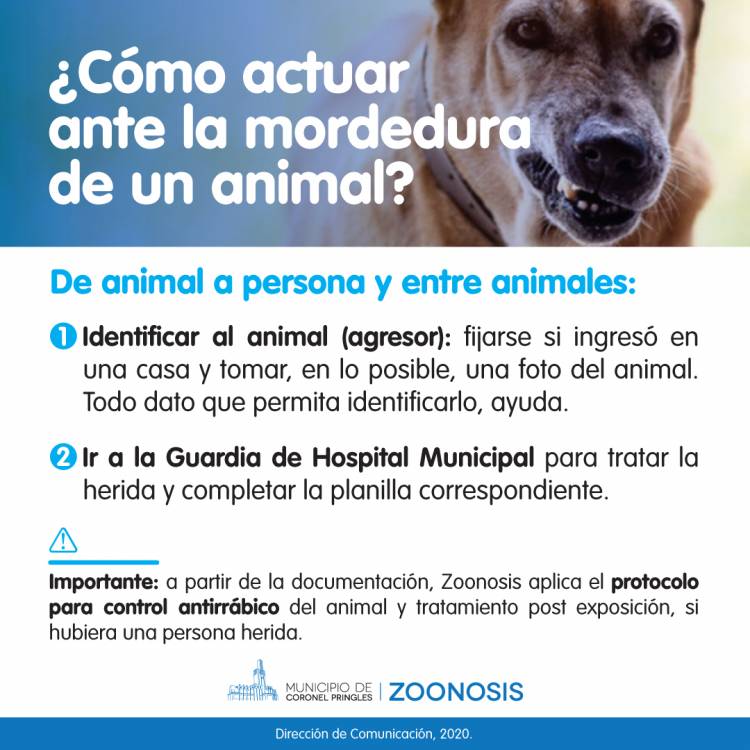 La segunda medida es tratar ese traumatismo en un centro de salud. “En la Guardia del Hospital Municipal habrá unas planillas para completar para poder actuar sobre el animal que participó del accidente potencialmente rábico, como lo vamos a llamar a partir de ahora”, explicó Barrantes.