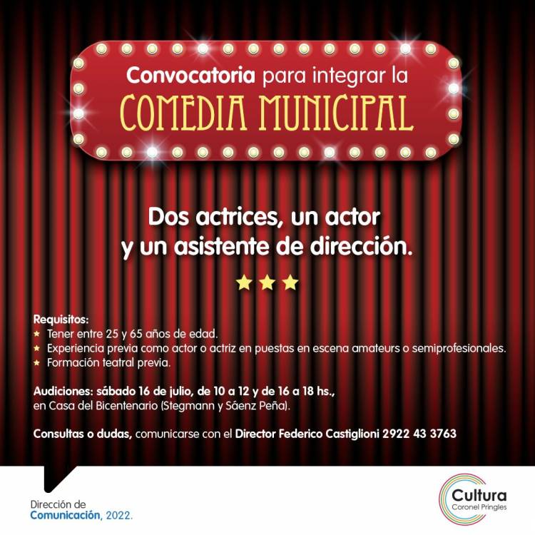 La convocatoria fue anunciada este lunes por parte de la Directora de Cultura, Eugenia Cavallaro y por Federico Castiglioni, quien fue seleccionado por la comuna local como Responsable de la Comedia Municipal para la producción, dirección y puesta en escena de proyectos teatrales.