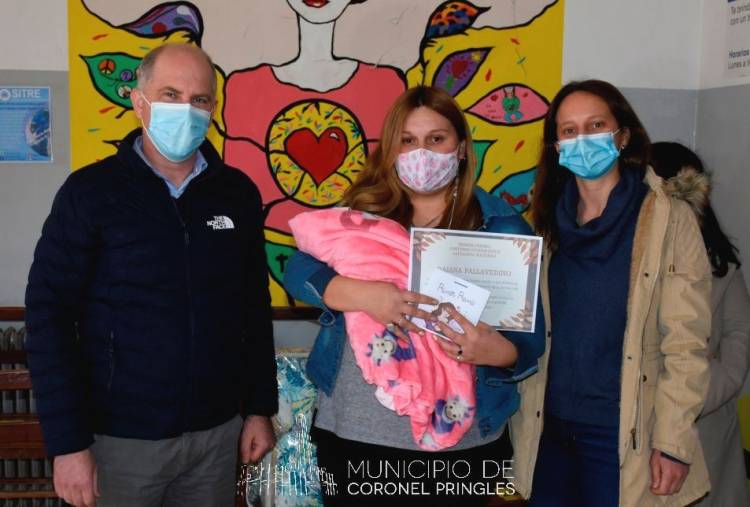 El Director del Hospital Municipal, Dr. Nicolás Queti; y la Asesora Maternal Lorena Vallejo, entregaron el 2º premio ($ 4.000 en orden de compra en Pañalera Pringles) a Eliana Ledesma.
