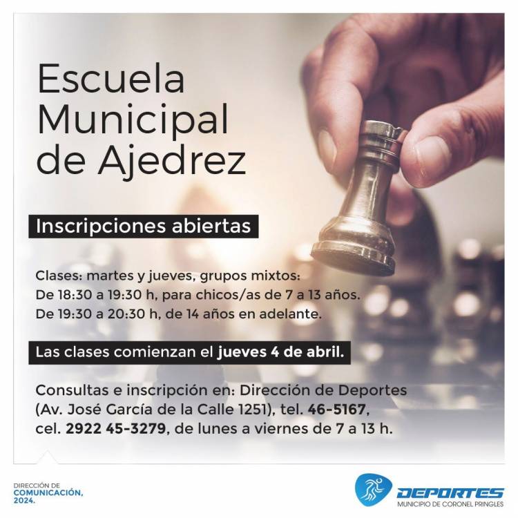 El nuevo profe manifestó que “el 4 de abril comenzamos con las clases de ajedrez que serán los días martes y jueves en dos horarios distintos: de 18:30 a 19:30 para los que tienen entre 7 y 13 años; y de 19:30 a 20:30 para los 14 años en adelante”.