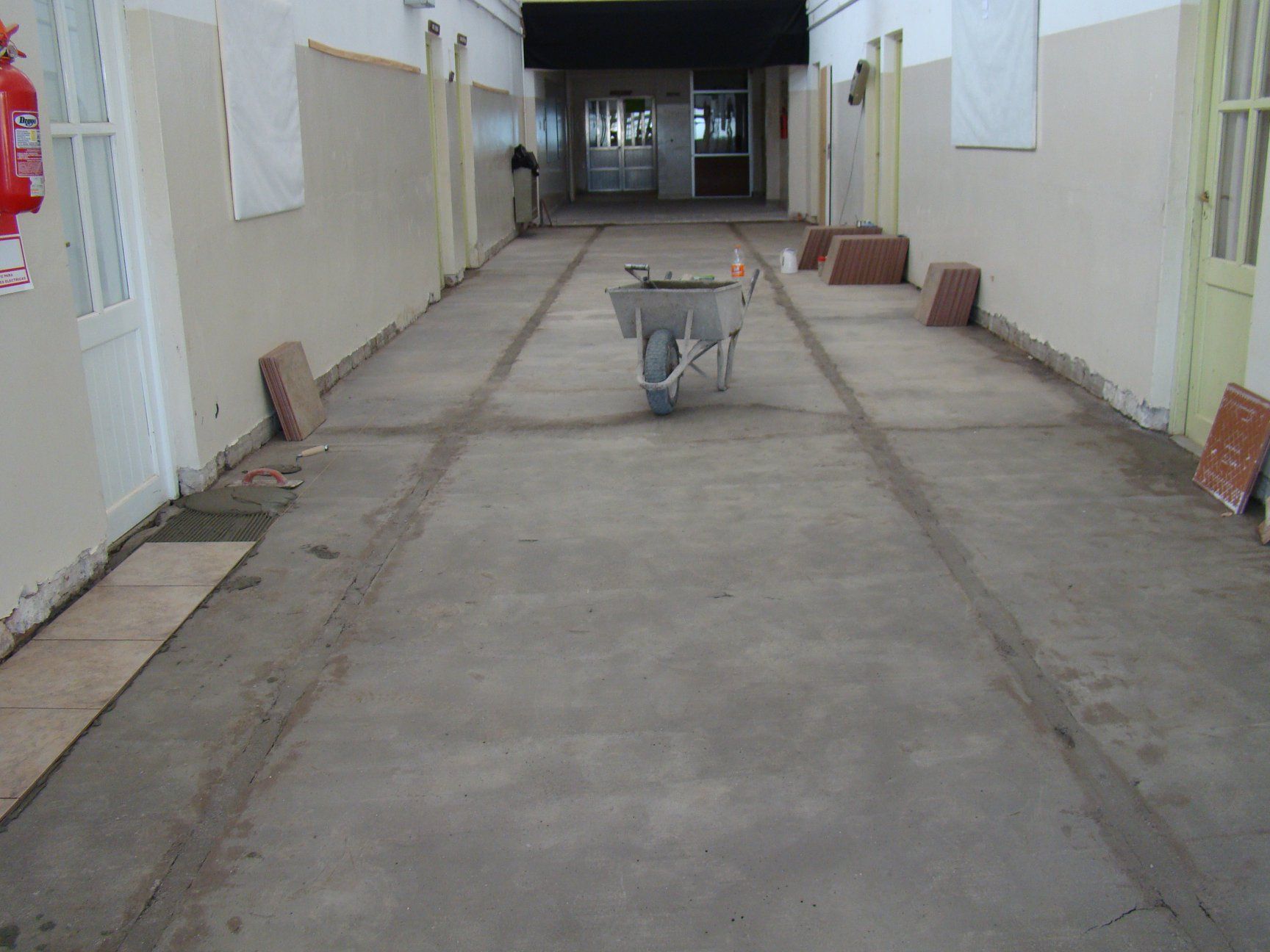 Una de ellas fue la EP Nº 22 donde se retiró todo el piso del pasillo central, (donde se realizan los actos) y se construyó una nueva carpeta para colocar el nuevo piso, tarea que culminará en los próximos días.
