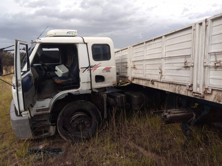 Producto de la colisión la combi de Betancor quedó volcada de lado sobre la banquina. El camión, que se encontraba vacío, no volcó pero también ingresó al costado de la vía.