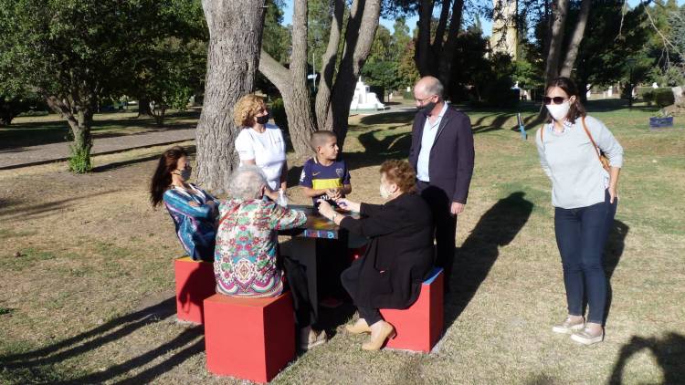 A partir de las 18 horas comenzó la actividad lúdica en la Plaza San Martín, con la inauguración de mesas para jugar, con propuestas para todas las edades.