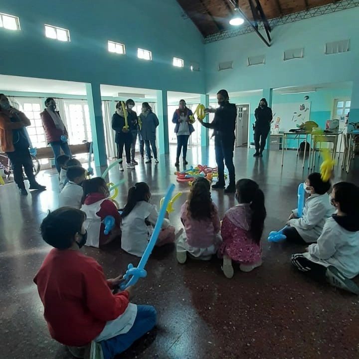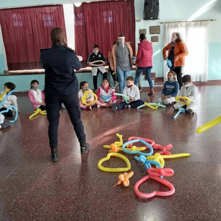 También, las uniformadas realizaron una recreación con globología con los chicos.