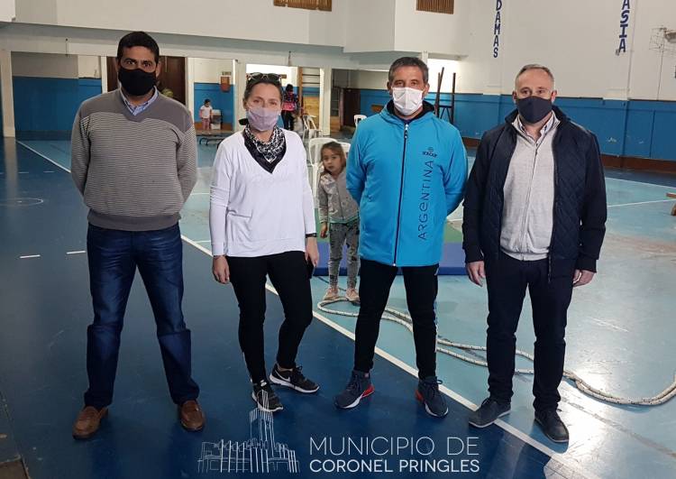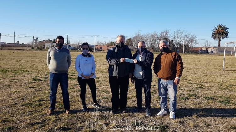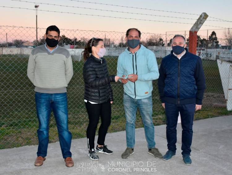 El recorrido comenzó en el Club Sportivo Pringles donde Darío Christensen, Jefe de Gabinete; Sebastián Querejeta, Director de Deportes; y Victoria Lassallette, concejal; entregaron un cheque a Juan D. Heredia y a Jorge Pedernera, Presidente y Vicepresidente, respectivamente del club.