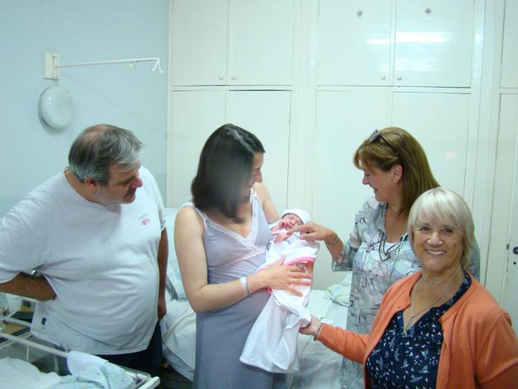 Todos los años esta Asociación realiza este noble y hermoso gesto con el bebé o beba que haya nacido en el Hospital Municipal. Firmas comerciales locales colaboraron con los productos que conformaron el ajuar.