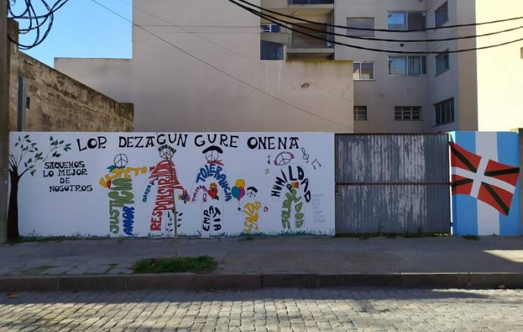 Ideado y diseñado por Verónica Iriarte, el mural vasco abarca tópicos actuales como la promoción del diálogo, la comprensión, el respeto, y la no violencia de género. La pintura fue realizada por Belén Aduriz, Adriana Bermúdez, Obdulia Gaztelu, Mary Irigoyen, Soledad Laurencena, María Olasagastia y la propia Verónica Iriarte, con el apoyo de un grupo de miembros de la comisión directiva, socios, integrantes del Coro Eusko Alaia y “amigos de amigos vascos de la Euskal Etxea”.