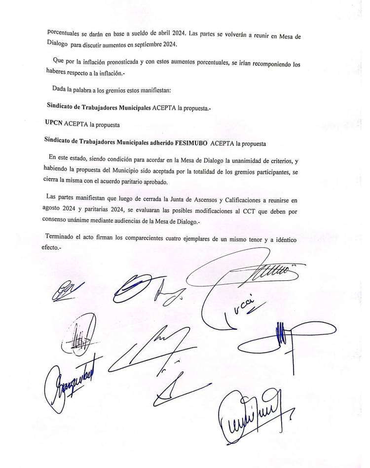 Un 30% de aumento y una suma de 70 mil pesos fue acordada hoy como aumento para los trabajadores municipales en el marco de la paritaria 2024.