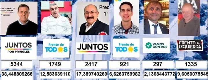 Juntos por Pringles, la lista del Intendente Lisandro Matzkin y que encabeza Luis González Estevarena como Primer Precandidato a Concejal Titular, se impuso en las Elecciones Primarias en nuestro distrito. Mientras tanto, el actual presidente del Comité Radical y quien lideró la boleta radical, Aldo Mensi, logró integrar la lista de JUNTOS definitiva a Noviembre, colocándose como Candidato a Concejal Titular Tercero. En tanto Joanna Tamagnini, su seguidora en la lista, ocupará el 6to puesto y Soledad Althabe irá Tercera en el cupo de Titulares al Consejo Escolar.
