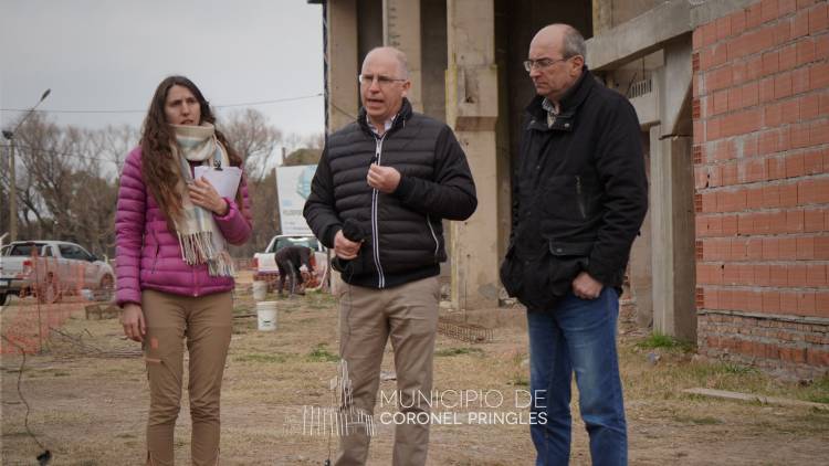 El Intendente Municipal Lisandro Matzkin (acompañado por el Secretario de Planeamiento Diego Pelegrinelli y la Directora de Obras e Infraestructura Belén Lucarelli) visitó el futuro Polideportivo Municipal que se está construyendo en el Balneario Municipal.