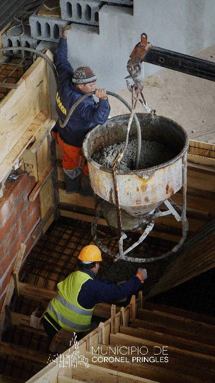 En cuanto a las tareas que se están realizando, Belén Lucarelli, señaló que "en esta etapa 4 estamos trabajando en distintos sectores del Polideportivo. En este momento se está llenando con hormigón la estructura de las escaleras para llegar a las tribunas."