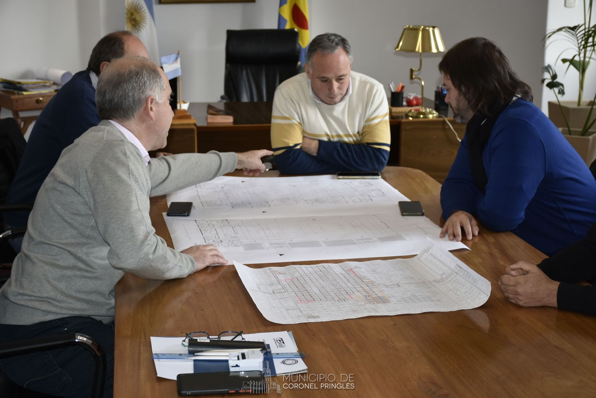 Del encuentro participaron el Jefe de Gabinete Darío Christensen; el Secretario de Planeamiento, Obras y Servicios Púbicos, Diego Pellegrineli y Raúl Sicardi, Inspector Jefe Distrital de Coronel Pringles.