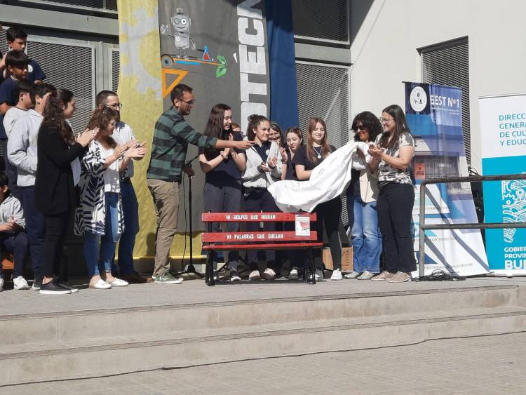 En el marco del día internacional de la eliminación de la violencia contra la mujer, el Servicio de Prevención y Asistencia de las Violencias local junto a alumnos de la Escuela Técnica N°1, inauguraron el Banco Rojo en la muestra institucional llevada a cabo hoy en el citado establecimiento.