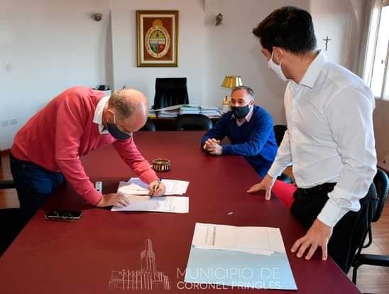 El Intendente Lisandro Matzkin recibió en su despacho a la Subgerente del Banco Provincia, María José Nieto, a fin de firmar la documentación. También acompañaron Daniel Ockier, por la entidad bancaria y Darío Christensen, Jefe de Gabinete de la comuna.