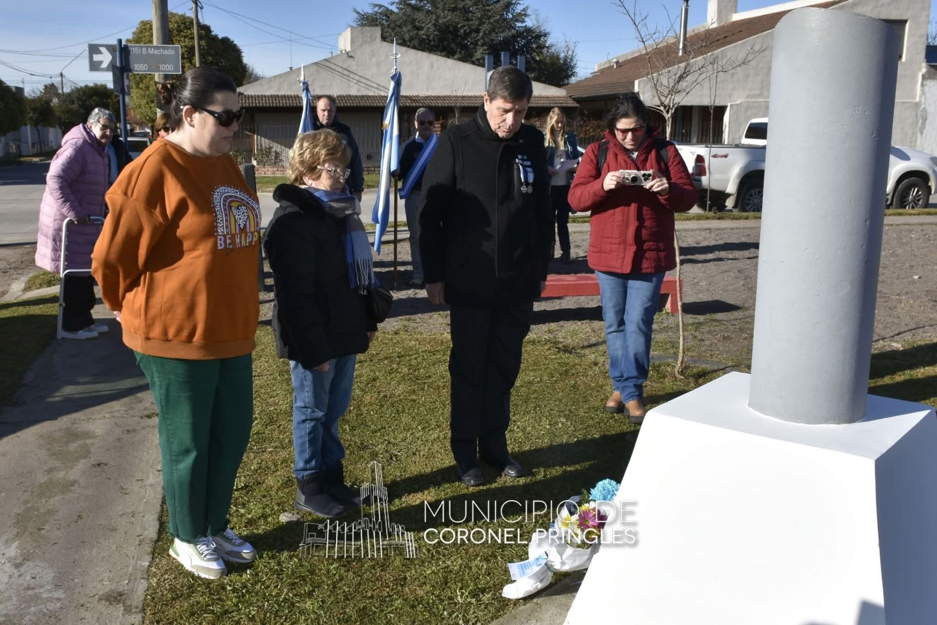 Luego de la entonación del Himno Nacional Argentino y de la colocación de ofrendas florales al pie del cenotafio, hizo uso de la palabra Carina Lagleyze (Museo Histórico La Paloma) quien destacó que luego de la guerra, quienes regresaron tuvieron que enfrentar el olvido y el rechazo de la sociedad.