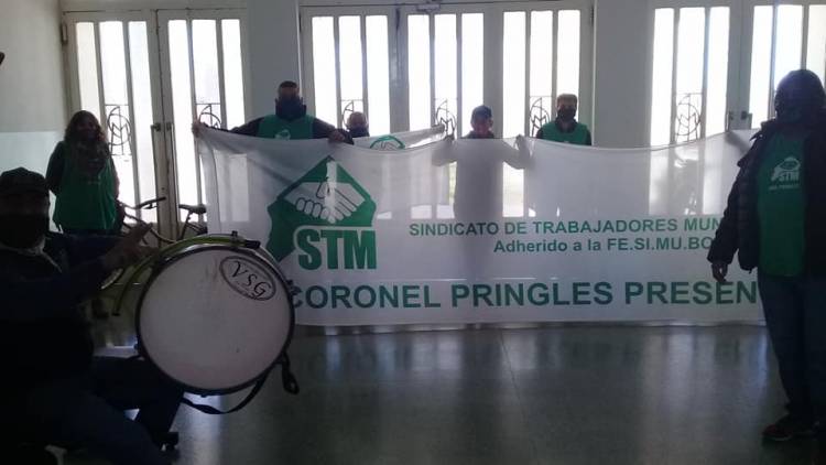 En el día de hoy el cuerpo de delegados del Sindicato Municipal FESIMUBO de Coronel Pringles, se hizo presente en el Palacio Municipal reclamando aumento salarial.