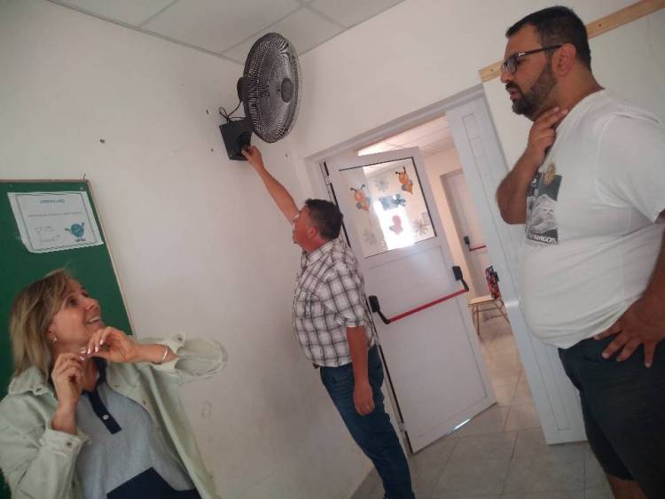 El Inspector de Infraestructura Ariel Morantes y los Consejeros Escolares Maximiliano Garaicochea, Edgardo Teo Cabanillas y Natalia Sol se acercaron hasta la EES 5 y EP 30 para corroborar eficaz funcionamiento de nueva cocina agilizando tareas pertinentes a cada auxiliar y trabajos realizados por proveedores del Consejo Escolar en correcta instalación de ventiladores industriales adquiridos por Institución a través de SITRARED .