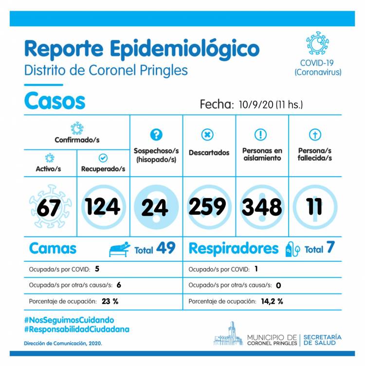 COVID-19: 16 casos positivos, 5 negativos, 1 fallecido y nuevos hisopados en Pringles