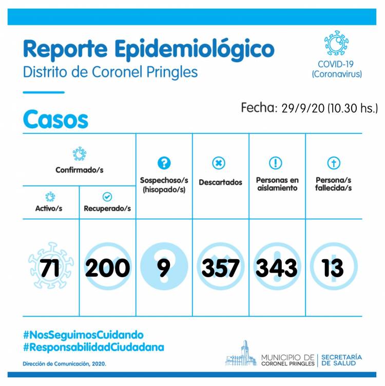 COVID-19: 200 vecinos recuperados en Pringles