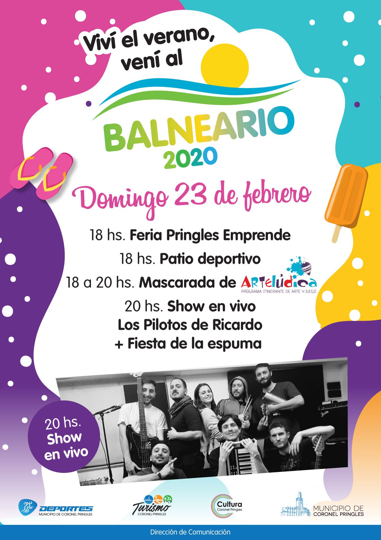 Este domingo 23 de febrero cerramos la temporada 2020 de Viví el verano, vení al Balneario con un show en vivo de Los Pilotos de Ricardo y muchas propuestas más.