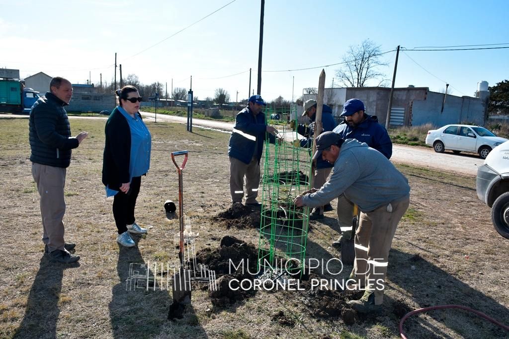 Conmemorando el Día del Árbol, la Dirección de Ambiente y Espacio Público plantó distintas especies arbóreas en la Plaza de las Colectividades, la cual se encuentra ubicada entre las calles Alvear (45), Arturo Illia (45 bis), Rauch (17) y Bahía Blanca (18).