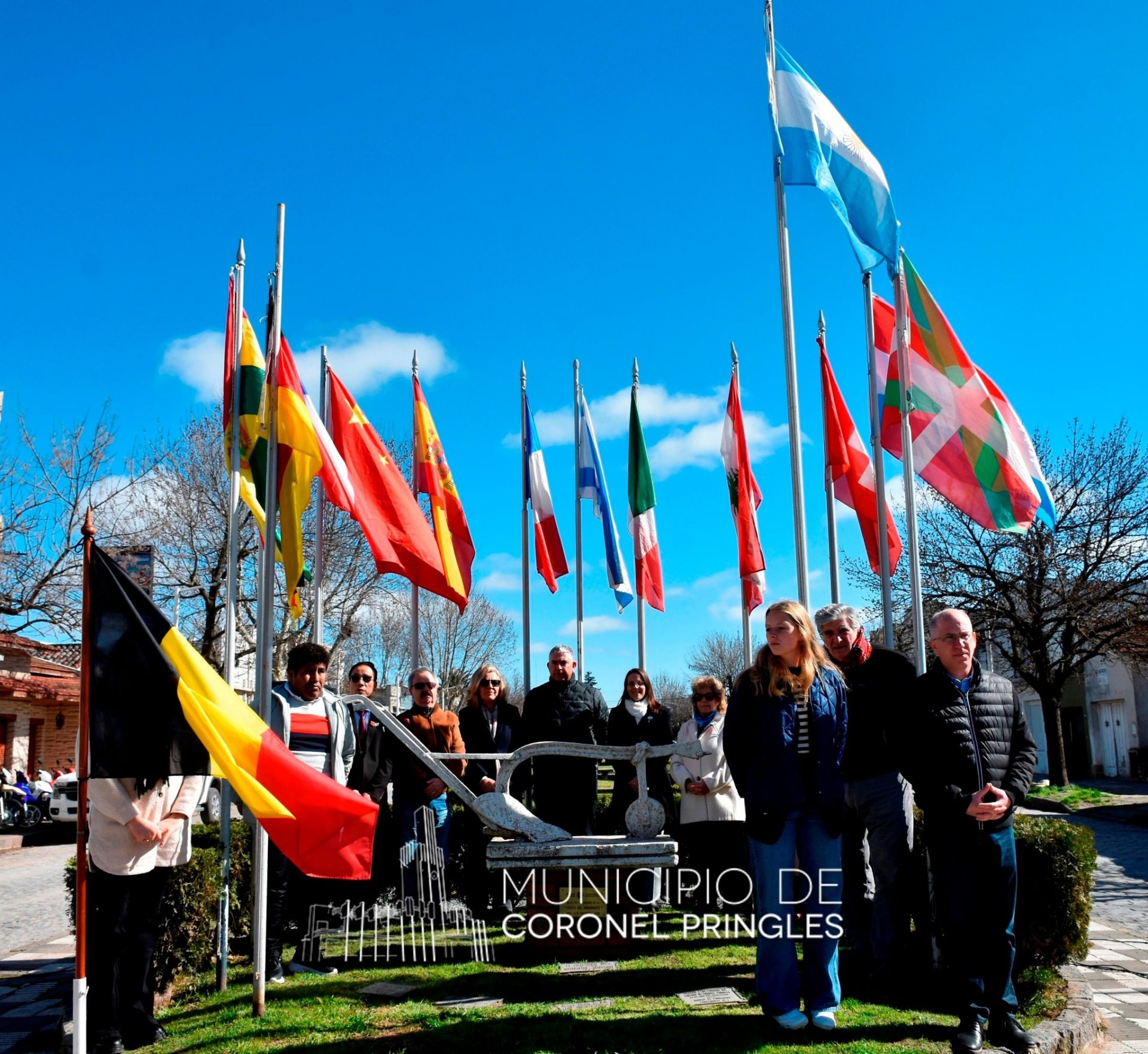 También se izaron las banderas de cada colectividad y se compartió un texto de Máximo Suárez (EES N° 3), leído por su compañero Bruno Rossi, el cual narra la llegada de un inmigrante a nuestra ciudad, relato que formó parte de “Voces al papel – Anecdotario pringlense”, programa de la Dirección de Cultura.
