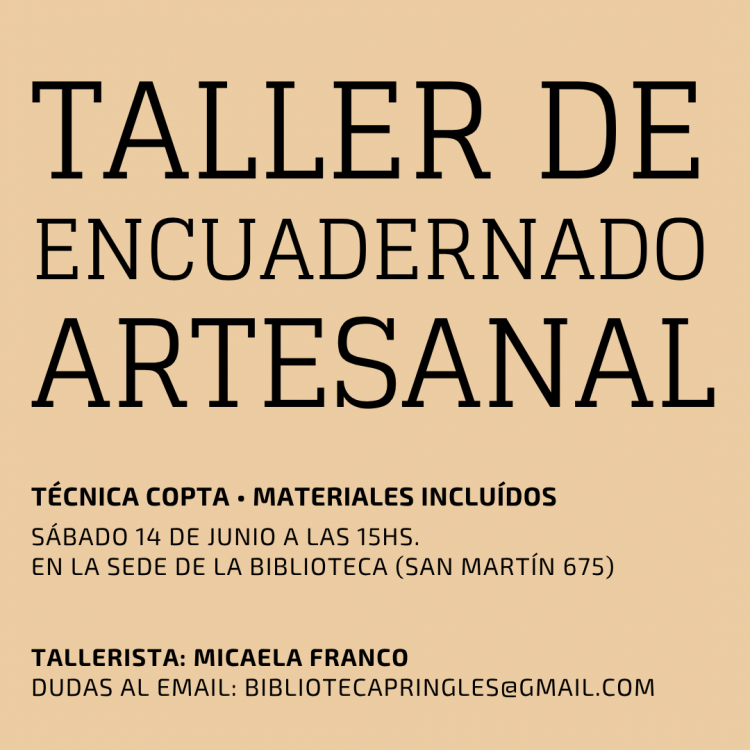 En preparación para el Día del Padre, Micaela Franco presenta en la Biblioteca Popular Pringles su taller de encuadernado artesanal.