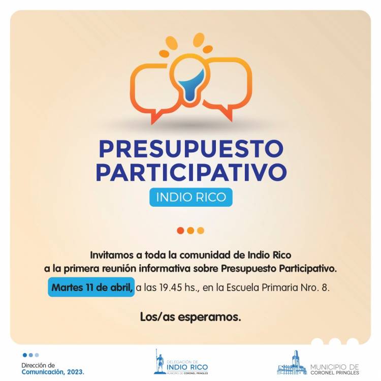 Ya se concretó un encuentro con periodistas de Pringles e Indio Rico. Ahora vine otro gran paso: reunión con la comunidad indiorricense para contarles de qué se trata un presupuesto participativo, SU presupuesto participativo y poner manos a la obra.