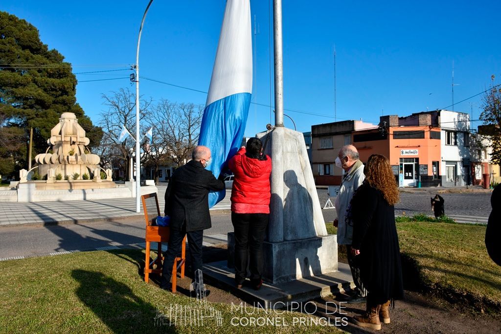 El izamiento estuvo a cargo, como lo explicara Eugenia Cavallaro, Directora de Cultura, por referentes del área de salud quienes “por el contexto actual dan batalla diariamente en pos de la salud de todos los pringlenses”