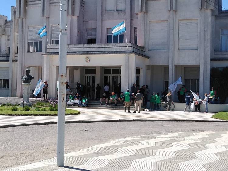 Mientras tanto, el sector gremial FeSiMuBo se manifestó pacíficamente temprano en la explanada, llevando banderas y bombos a la espera de los resultados de la reunión de la Mesa de Diálogo que en ese momento se concretaba en el primer piso del Palacio Comunal. A la par, hubo custodia policial en el ingreso y en el interior del Edificio Municipal, aunque la entrada a la gente para trámites era normal.