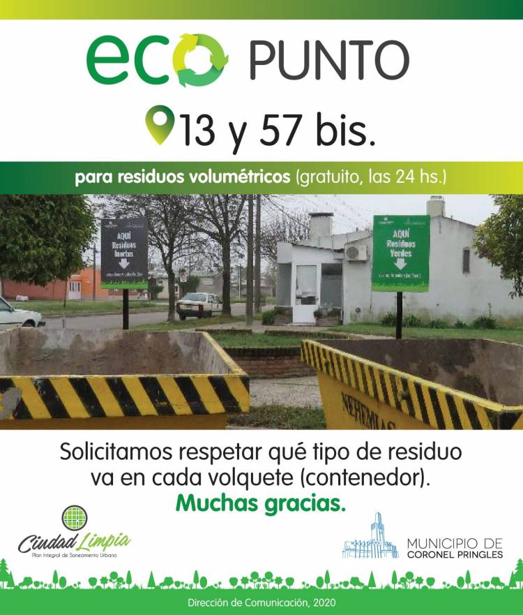 Los Eco Puntos son una alternativa gratuita para disponer los residuos volumétricos. Respetar qué va en cada contenedor es una forma de colaborar con la limpieza de la ciudad y respetarnos entre vecinos.