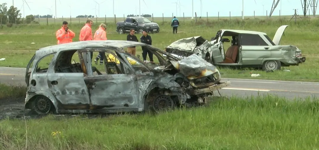 El siniestro se produjo cuando la Chevrolet Meriva y Ford Falcon chocaron de frente en la Ruta Provincial Nº 51, a la altura del kilómetro 718. El vehículo menor terminó incendiado.