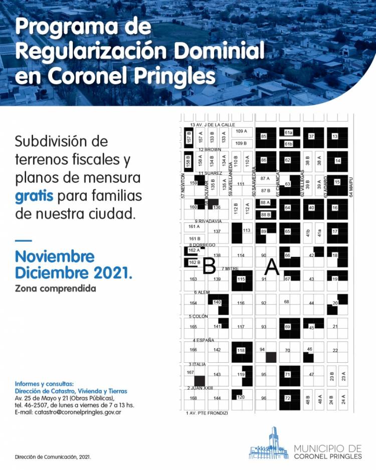 Geraldine Montes, Directora de Catastro, Vivienda y Tierras de la comuna señaló que “desde el lunes 29 de noviembre, y hasta el 3 de diciembre, se retoma el Programa de Regularización Dominial en la zona comprendida entre las calles Newton (57), Maipú (64), Boulevard 13 y Av. Frondizi (1)”.