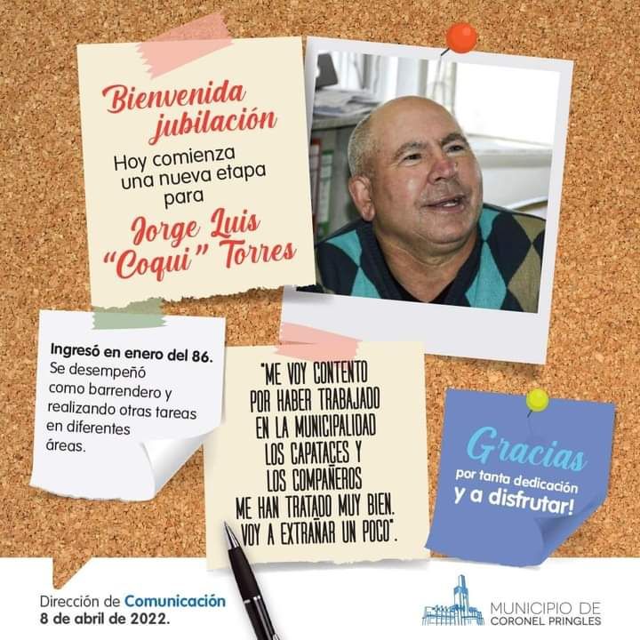 Hoy es el último día de trabajo en el Municipio de José Luis Torres, “Coqui” para todo el mundo. Llegó el momento de comenzar una nueva etapa luego de 36 años de trabajo (ingresó en enero del 86).