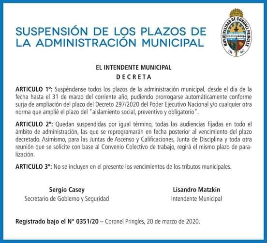 Suspensión de los Plazos de la Administración Municipal por la Cuarentena